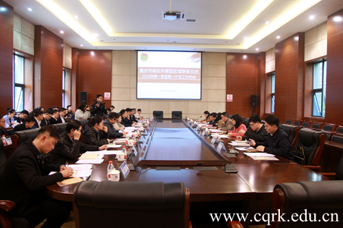 3月13日下午,重庆市高校共青团区域联系交流2018年第一季度第一片区工作例会在taptap点点体育会议中心召开。共青团重庆市委副书记、党组成员黄永宜,团市委高校工作部部长张斐、副部长郭煜苑,taptap点点体育党委副书记舒卫华,以及重庆市内18所高校的团委负责人、学生会主席及学生代表参加会议。会议由张斐主持。