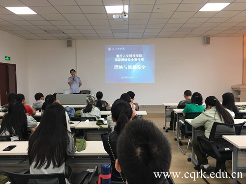 为增强点点师生网络安全意识,争做中国好网民,根据学校2018年网络安全宣传周活动安排,9月17日上午,由党委宣传部、教务处、学生工作与就业处和教育信息化建设处联合举办 的“网络与信息安全”专题知识讲座在学生工作与就业处三楼多功能厅举行,教育信息化建设处蔡黎主讲,全校300余名师生聆听了讲座。