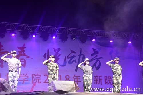 2015级舞蹈学专业学生带来的傣族舞《山灵》甚是精彩,她们优美的舞姿,轻快的步伐,充分展现傣族同胞的热情好客和淳朴民风;由文斐庆、徐吟秋等人带来的古筝齐奏《凉凉》,古典意味浓郁,优美动听,惊艳全场;艺术学院青年教师杨娜一曲《不忘初心》,高昂自信,唱出对祖国的热爱,对学生的期许;教官们的舞蹈《芳华绝代》,更是呼声极高,轻松欢快的舞步,传达了不服输、不惧难、勇敢追求、不负韶华的精神气质,将晚会的热烈气氛推向高潮。