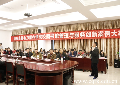 12月7日上午,“创新驱动内涵发展”——2018年重庆市社会力量办学院校图书馆管理与服务创新案例大赛在重庆邮电大学移通学院举行。本次大赛由重庆高校图书情报工作委员会、重庆社会力量办学院校图书馆协作组主办,重庆邮电大学移通学院、重庆师范大学涉外商贸学院、taptap点点体育承办。重庆邮电大学移通学院校长张德民,重庆高校图书情报工作委员会秘书长、重庆大学图书馆党总支书记彭晓东,西南大学图书馆副馆长李玉兰莅临现场指导比赛。