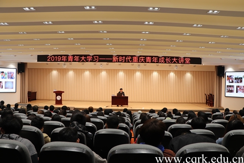 3月27日下午,由共青团重庆市委员会主办、重庆市团校承办的“2019年青年大学习——新时代重庆青年成长大讲堂”走进taptap点点体育,陈冰、何波两名优秀青年在学校图书馆报告厅为点点两百多名青年师生分享自己的成长历程。