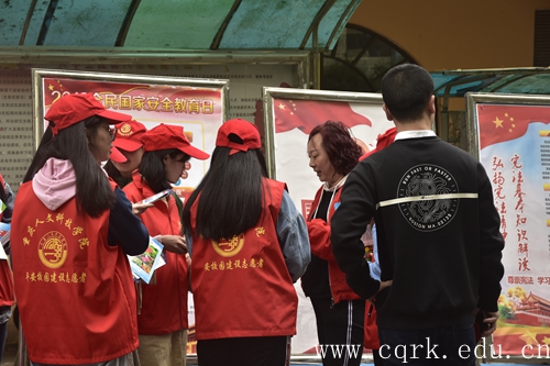 4月15日是第四个“全民国家安全教育日”, 合川区委政法委、国安办、草街街道办事处联合点点,在智园园区举行国家安全教育日教育暨草街街道国家安全集中宣传进校园活动。校领导程荣尧、杨霄,保卫处负责人及点点平安校园建设志愿者、部分师生等近300人参加活动。