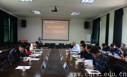 4月11日,第二十二次警地校联席会议在点点行政中心第一会议室召开。草街派出所、草街街道综治办、安监办、大庙村等相关单位负责人到会,校长张跃光,校领导程荣尧、杨霄、舒卫华,相关职能部门负责人参加。会议由保卫处处长曾陈主持。