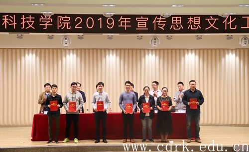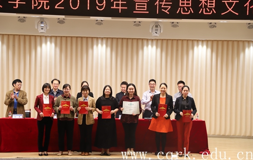 程荣尧宣读了《关于表彰2018年宣传思想文化工作先进集体和先进个人的决定》,8个集体和24名师生受到表彰。校领导现场为获得表彰的先进集体和先进个人代表颁发获奖证书。