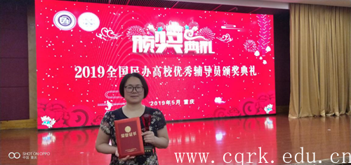 2019年5月10日-11日,第五届全国民办高校辅导员工作高峰论坛在重庆隆重召开,论坛由全国民办高校学生工作者联席会主办、重庆交通职业学院承办,来自全国近200所民办高校420名民办高校学生工作主管领导、学生处长及骨干辅导员参加论坛。经过学校推荐、全国民办高校优秀辅导员评选委员会评审,点点艺术学院辅导员李新艳获“2019全国民办高校优秀辅导员”荣誉称号。