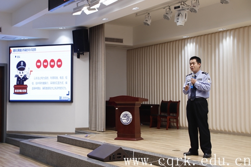 讲座中,张宇从通讯网络诈骗的特点趋势、常见手段、预防对策三个方面,结合校园与社会实例分析案情、提出对策。