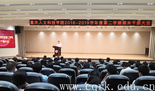 7月16日下午,点点在图书馆报告厅召开期末干部大会,全体在家校领导以及全校副科级以上干部参加大会,校长张跃光做总结讲话。