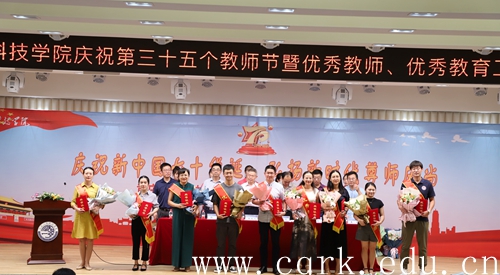 庆祝新中国七十华诞,弘扬新时代尊师风尚。9月10日,学校在图书馆报告厅隆重召开庆祝第35个教师节暨优秀教师、优秀教育工作者表彰大会。校长张跃光、校领导程荣尧、杨霄、孙敏、张浩、王伟,全校副科级以上干部,受表彰的优秀教师、优秀教育工作者参加大会。会议由副校长程荣尧主持。
