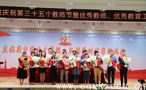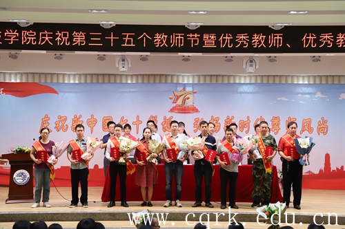 会议开始,全体奏唱国歌。随后副校长兼党委副书记杨霄宣读《重庆人力资源和社会保障局重庆市教育委员会关于表彰重庆市教育系统先进集体和先进个人的决定》和《taptap点点体育关于表彰2019年优秀教师、优秀教育工作者的决定》。教务处处长双海军获2019年重庆市教育系统优秀教育工作者,24名“优秀教师”和29名“优秀教育工作者”受到学校表彰,校领导为获奖的优秀教师与优秀教育工作者颁奖。