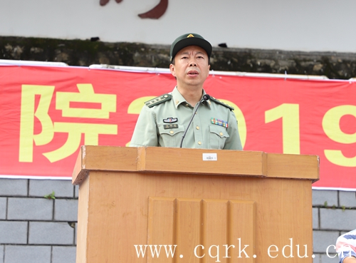 王利军上校代表承训教官发言,他强调,军训是国家法律规定的必修课,也是大学生履行兵役义务、接受国防教育的基本形式。他要求同学们以满腔的爱国之情、高昂的报国之志投入到军训当中去,服从命令,听从指挥,培养严明的组织性和纪律性,挑战自我。