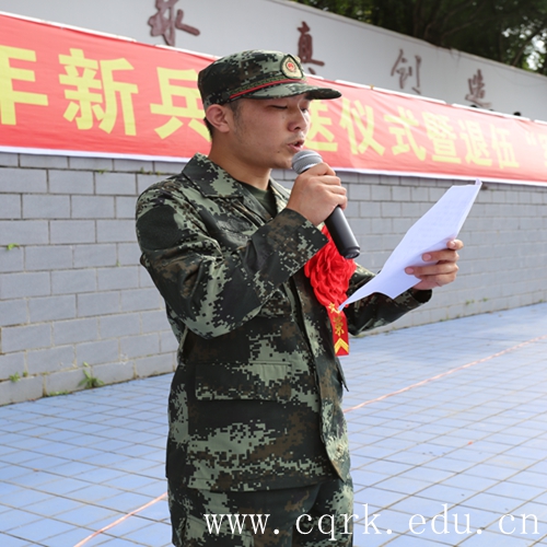入伍新兵代表,工商学院2015级工程管理专业应届毕业生邵强代表全体新兵表决心:不忘初心,牢记使命,勤奋学习,刻苦训练,争做“有灵魂、有本事、有品德”新一代革命军人,不辜负党和人民的信任和重托,为实现“中国梦”“强军梦”奉献自己的青春和力量!