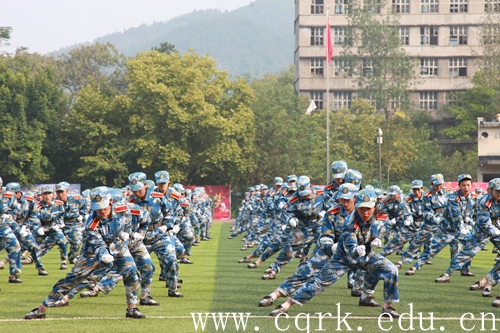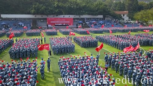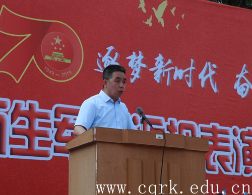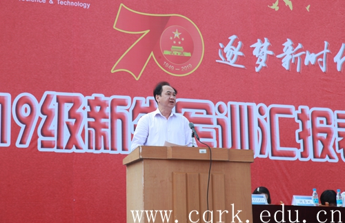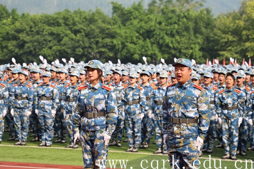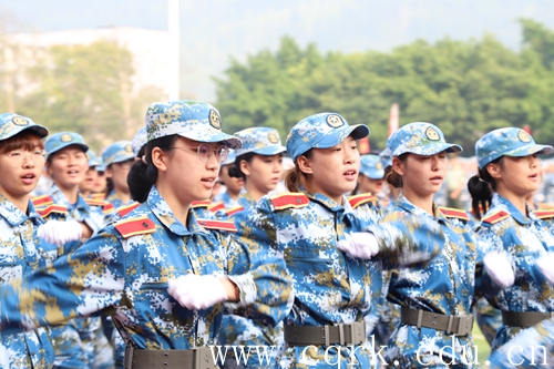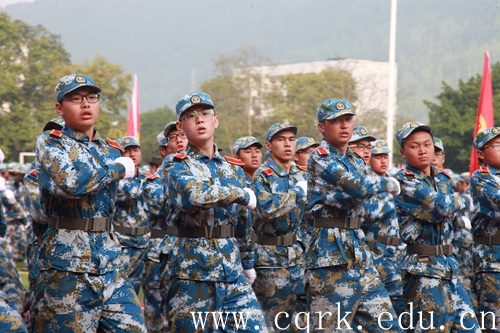 9月27日上午,点点2019级新生军训汇报表演暨总结表彰大会在校田径运动场隆重举行。校长张跃光,合川区征兵办副主任、人武部副部长王利军上校,解放军原重庆通信学院国防生大队政委张光彩上校,校领导程荣尧、杨霄、舒卫华、孙敏、张浩及合川区武装部机关领导、学校各二级单位负责人观看了此次汇报表演。大会由校党委副书记、副校长杨霄主持。