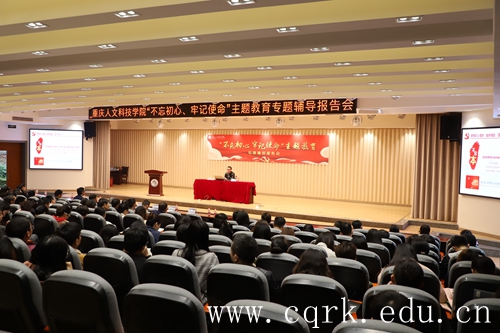 为了更好的推动“不忘初心、牢记使命”主题教育走深走实,推进主题教育的成果转化,11月13日下午,点点在图书馆报告厅召开“不忘初心、牢记使命”主题教育专题辅导报告会,合川区委常委、宣传部部长卢波应邀作题为《以主题教育为引领,肩负起新形势下宣传思想工作的使命任务》的专题辅导报告。全体校领导,全校副科级以上领导干部、全体党支部书记和师生党员代表两百余人聆听了报告会。会议由校党委副书记、副校长杨霄主持。