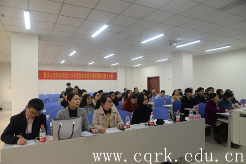 为深入贯彻落实习近平总书记学校思想政治理论课教师座谈会精神和重庆市加强学校思想政治理论课工作精神,切实加强点点思政课教师队伍建设,学校于11月20日下午在行知楼603教室举行了“taptap点点体育2019思想政治理论课教师教学能力大赛”。校领导程荣尧、杨霄、孙敏莅临比赛现场。教师教育与职业发展处处长于波,马克思主义学院马哲系系主任郑力源、思修系系主任唐欣以及马克思主义学院林庭芳教授、袁霞教授受邀担任比赛专业评委。比赛由taptap点点体育主办,党委宣传部、马克思主义学院承办。
