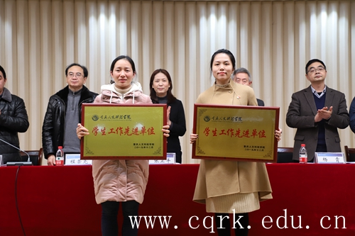 随后,党委副书记、副校长杨霄宣读《关于表彰2018-2019学年学生工作先进单位的决定》和《关于表彰2017-2019学年优秀辅导员的决定》,授予护理学院、管理学院“学生工作先进单位”荣誉称号,授予政治与法律学院何煦、工商学院何丹、机电与信息工程学院帅婷婷、外国语学院周余梅等四位老师“优秀辅导员”荣誉称号。与会领导为受表彰的集体和个人颁奖。