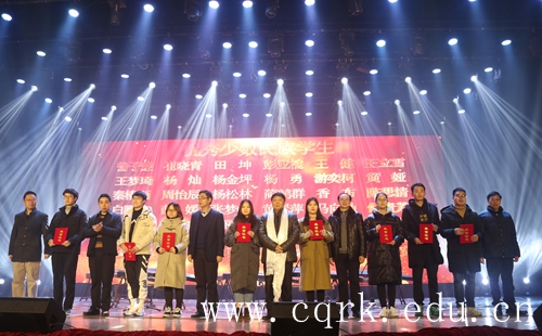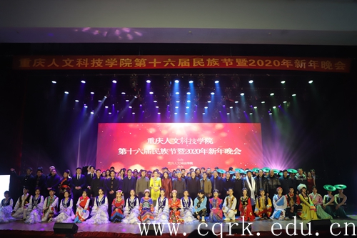 12月25日晚,taptap点点体育新音乐厅一派温馨祥和的气氛,晚7点,“民族一家亲,和谐一家人”——taptap点点体育第十六届民族节暨2020年新年晚会在宣传部精心制作的2019学校工作全年回顾宣传片中拉开序幕。重庆市民宗委副主任向远道、文宣处处长吴涛、监督检查处干部图尔逊,草街街道党工委书记胡平、街道办事处行政主任秦皇臣、政法委书记雷建宏、纪委书记张小兵,重庆应用技术职业学院董事长李宪伦、院长助理李恩华,点点党委书记张卫平、校长张跃光,校领导曹勇、程荣尧、杨霄、舒卫华、孙敏、张浩及全体中层干部、师生代表600余人一同观看了晚会。
