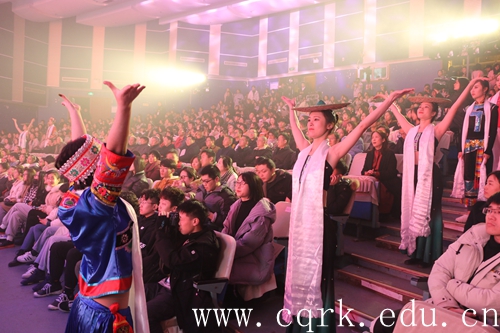整场晚会呈现具有浓郁民族特色的文艺节目,创意和灵感多来源于少数民族群众的生产和生活,充分体现了我国各民族的传统文化内涵和精华,演员们精彩绝伦的表演,赢得台下观众阵阵掌声。嘹亮的歌声,唱出了各族人民同呼吸、共命运、心连心,凝心聚力、奋发作为,向着更加美好的明天奔跑的信心决心,也为即将迎来建校20周年,凝心聚力接受教育部本科教学工作合格评估鼓舞打气。