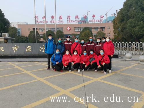 重庆志愿者队到达武汉医疗中心(第二排左一为吴豪杰)