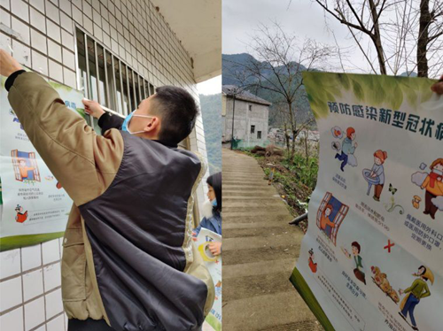 这位同学来自贵州省桐梓县怀国寺。因新型冠状病毒肺炎的突发,返乡的赵雪琳同学自愿报名参加怀国寺村支书组织的防疫志愿服务活动。志愿服务中赵雪琳主要负责发传单,向村里人讲解相关疫病知识,普及一些防护措施,协助当地村委会病毒防治工作的开展。