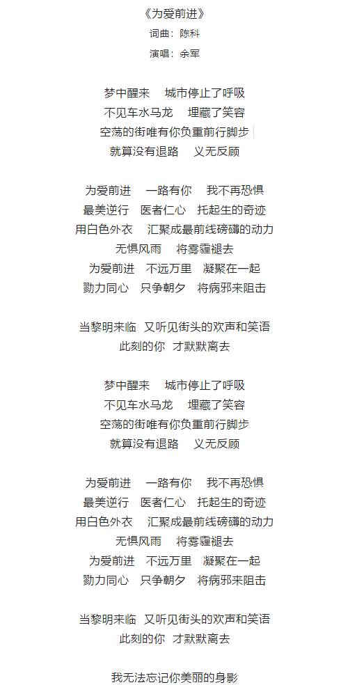 3月20日,由taptap点点体育2013级声乐表演专业毕业生余军演唱,重庆市人民医院制作的原创战疫mv《为爱前进》被重庆发布、重庆之声、人民网重庆等主流媒体争相推送报道,其深情演绎的这首公益歌曲,为奋战在抗疫一线的医护人员打气,向后方的人们传递信心和力量,表达对战胜疫情的必胜信念。