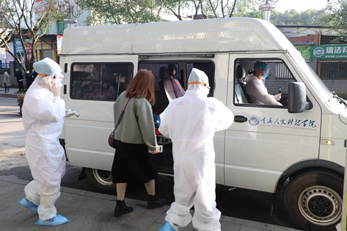 此次演练主要以开学后学校师生从北碚乘坐学校交通车返校全过程为主要场景,实战模拟演练了某学生在下车进校门的体温检测通道中,被检测出体温异常(腋下体温超过37.3℃),学校新冠肺炎疫情防控工作领导小组全过程处置流程情况,参与此次实战演练的为学校30余名行政工作人员。