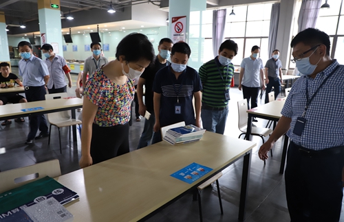 吴景明一行实地考察了学校合川人文医院和智园学生食堂。在合川人文医院,仔细查看了学校体温检测点、医院发热门诊、预检分诊通道、隔离区等区域疫情防控布置工作情况,详细了解医院工作安排、卫生防疫、健康隔离、安全保障等工作流程和防疫机制。在智园学生食堂,详细了解了食堂健康排查、环境消毒、分时段就餐、分散就餐等情况。叮嘱学校要严格落实防控措施,抓实体温检测、戴口罩、分时段就餐、分区域活动等关键环节,加强学生管理,周密安排教学活动,确保师生安全万无一失。