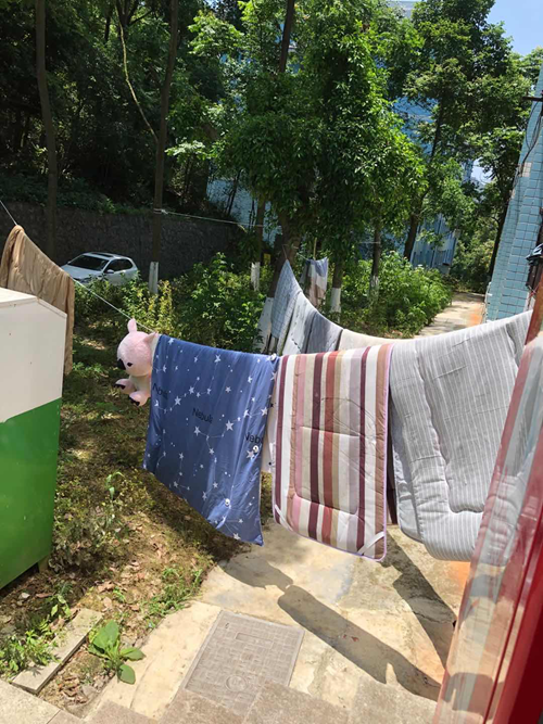 学生工作与就业处组织辅导员、宿管阿姨和后勤部门,利用返校期间难得持续的大晴天,为返校的孩子们暖心晒被。