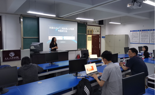 交流会上,阿里云创新中心(重庆)团队与我院围绕校企全面合作进行了深度沟通交流,双方重点对产教融合及人才培养、师资队伍培训、专业建设等内容深入探讨,就人工智能、AIoT、大数据、云计算等领域的师资培训、学生培育等方向的合作达成了基本合作共识。
