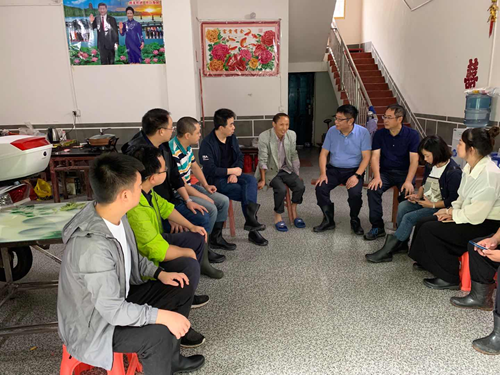 学校一行与驻村干部和贫困户亲切交谈