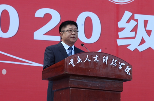 典礼在庄严、辉煌、激昂的国歌声和升旗礼中拉开序幕。校党委书记、督导专员张辉发表讲话,代表全校师生对2020级新生表示热烈欢迎。