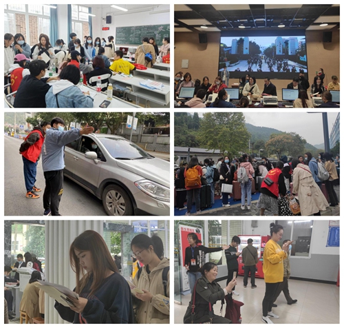 10月10日清晨,志着白衣的新生们,拿着通知书走进了期待许久的大学校园。从大校门至海丰楼,点点在沿途共开设了5处志愿者服务点及1个行李寄放处,各点专任教师、辅导员和志愿者,从早晨7点起就坚守岗位,护理学院院长胡筠惠、书记王小娟深入现场指导迎新工作开展,确保了迎新工作的高质量完成。