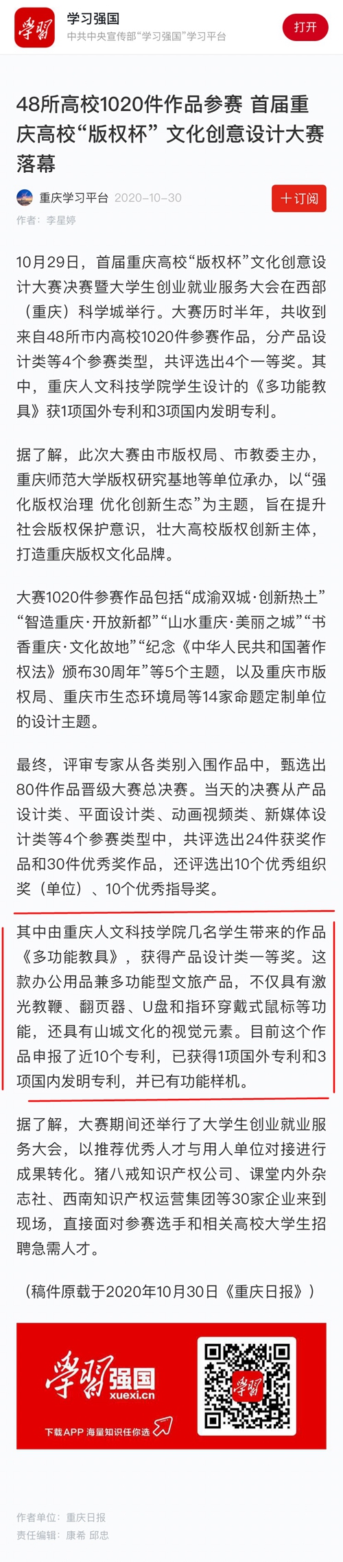 《重庆日报》报道: