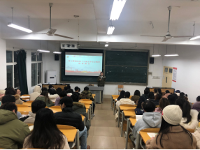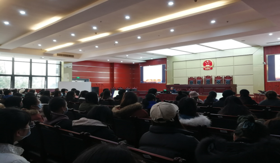 12月10日下午,马克思主义学院院长张国容在行知楼模拟法庭进行了宣讲,学校师生代表到场聆听。