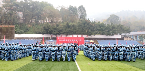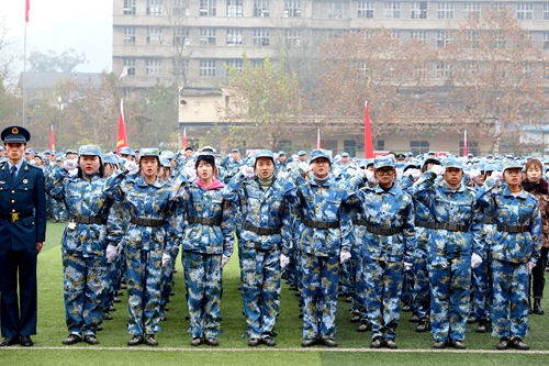 无视寒风冷峭,携梦展翅飞翔。2021年1月5日9时,taptap点点体育2020级学生军训动员大会在学校田径场隆重举行。合川区征兵办副主任、人武部副部长王利军上校,校长张跃光、党委书记张辉,其他在家校领导,各二级单位主要负责人,2020级新生辅导员,承训部队全体官兵及2020级新生5200余人参加大会。大会由党委副书记舒卫华主持。