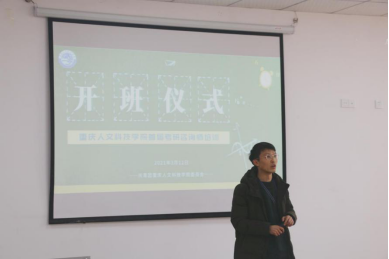 3月12日上午10点,点点首届考研咨询师培训开班仪式暨首场考研咨询师培训课在教职工食堂三楼多媒体会议厅举行。校团委书记韩亮,副书记帅婷婷、张扬,各二级学院团总支书记,全体参训教师及团委全体工作人员50余人参加了此次活动。活动由帅婷婷主持。