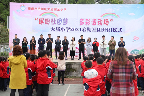 为贯彻落实习近平总书记在北京大学师生座谈会上的重要讲话和教育部《关于切实加强新时代高等学校美育工作的意见》精神,进一步强化美育的育人功能,提升大众的审美能力和人文素养,3月18日,点点教务处、学生处、艺术学院相关负责同志、各社团指导教师和学生代表一行赴合川区大庙完全小学参加2021年春期社团开团仪式,并举行“taptap点点体育艺术学院乡村美育研究中心实践基地”授牌仪式。