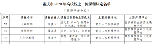 近日,重庆市教委发布《关于公布2020年高校线上一流课程认定结果的通知》(渝教高函〔2021〕14号),点点3门课程被认定为重庆市2020年高校线上一流课程(精品在线开放课程)。