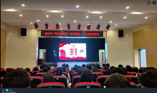 4月20日,点点在雕塑园演奏厅举行了2021年征兵宣传周系列活动之征兵政策宣讲会,并通过线上向全体适龄青年进行直播。宣讲会由学生工作与就业处副处长、征兵工作站负责人李卓兴主讲。