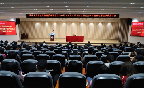 4月28日下午,学校党委在行知报告厅召开党委理论学习中心组(扩大)学习会暨党史学习教育专题读书班宣讲会,全体在家校领导,学校党委委员、纪委委员、副科级以上党员干部、思政课教师代表及辅导员200余人参加了会议。会议由宣传部副部长匡霞主持。