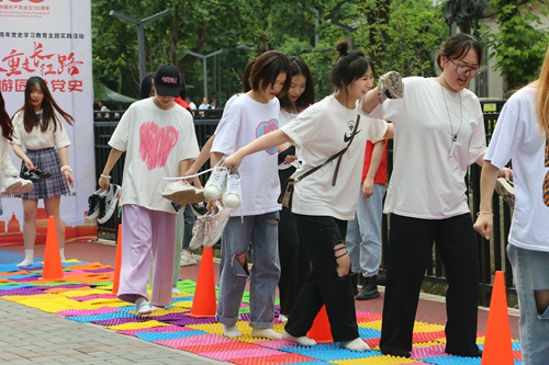 随后的趣味游园活动以追忆红色足迹为主线,以“历史事件介绍+趣味活动”的形式,设置“湘江战役—同心协力、强渡乌江—攻坚克难、四渡赤水—同舟共济、巧渡金沙江—携手并进、飞夺泸定桥—精诚团结、爬雪山过草地—风雨同舟”等6个活动区域,同学们通过答题、猜谜、朗诵等形式逐一通关,游园活动持续近三个小时。