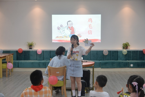活动中,学前教育学院两位同学为小朋友讲了《鸡毛信》、《大郭小郭行军锅》等红色革命故事,通过现场讲述让小朋友了解革命先辈无私奉献的精神;小朋友与教职工家长开展亲子表演和阅读,朗诵《长征》、《中国共产党》,讲述《小英雄雨来》的故事,演唱歌曲《国家》,和家长一起阅读书籍,大家分享、交流自己的阅读故事,活动现场童声起伏,温情四溢,欢乐不断。