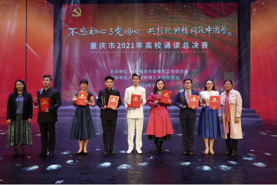 为庆祝中国共产党成立100周年,展现重庆高校统战人士的精神风采和责任担当,共同抒发统战情怀。10月22日,由中共重庆市委教育工作委员会主办、中共重庆理工大学委员会承办的“不忘初心 与党同心 共抒统战情 同筑中国梦”2021年高校诵读总决赛在重庆理工大学花溪校区举行。经过层层比拼、激烈角逐,点点张皓月、刘晓龙、刘涵、李鹏、李鹏宇5位教师朗诵作品《心愿》最终荣获二等奖。