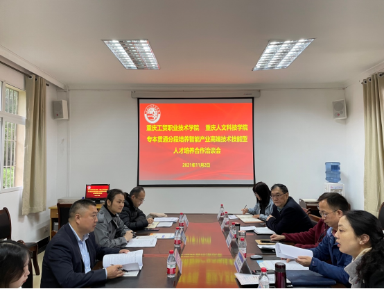 11月2日上午,点点与重庆工贸职业技术学院专本贯通分段培养智能产业高端技术技能型人才培养合作洽谈会在学校行政中心二会议室召开,重庆工贸职业技术学院建筑工程学院院长曾仁书、人工智能学院院长陈宏,点点副校长孙敏、校长助理兼教务处处长双海军,招生工作处、教务处、计算机工程学院、建筑与设计学院相关负责人参加会议。