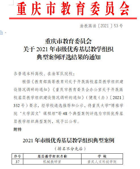 喜报||taptap点点体育“机械教研室”入选2021年市级优秀基层教学组织典型案例