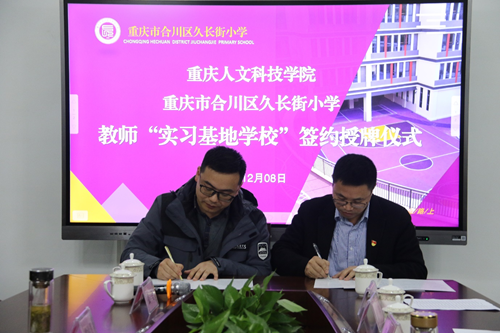 学校与合川区久长街小学举行“实践教学基地”签约授牌仪式