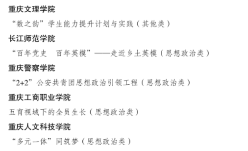 【喜报】学校《“多元一体”同筑梦》项目获评为重庆市“优秀团学工作品牌”项目