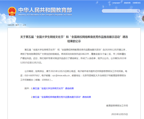【三全育人综合改革】学校学生在第五届“全国大学生网络文化节”中斩获佳绩
