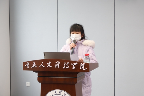 外国语学院2021级英语专业陈茜代表第一届行知创新实验班学发言,号召同学们站在新的起跑线上,怀揣梦想,携手并进,朝着目标,努力拼搏。