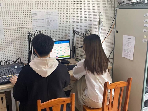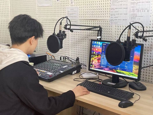 学生播音调试中