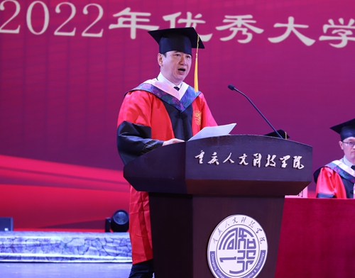 学校学位评定委员会委员、纪委书记、副校长程荣尧宣读学校《关于公布重庆市普通高校2022年优秀大学毕业生名单的通知》;